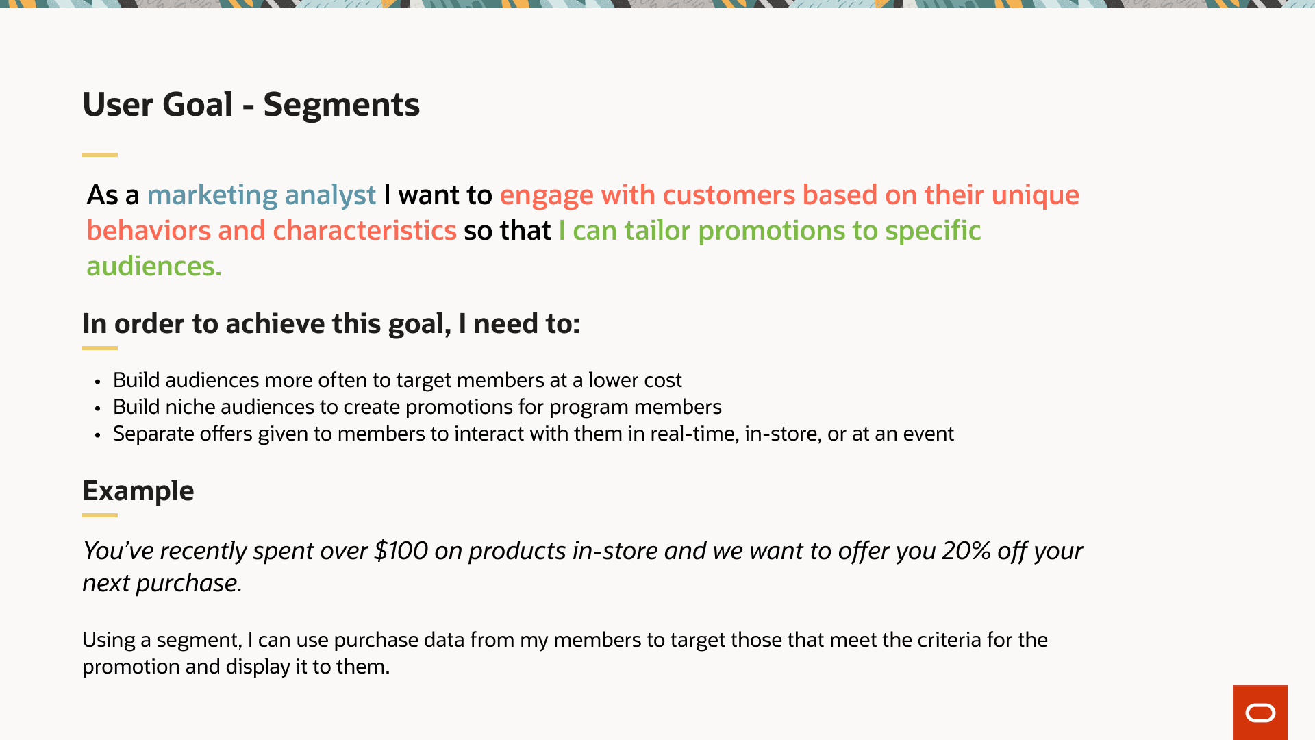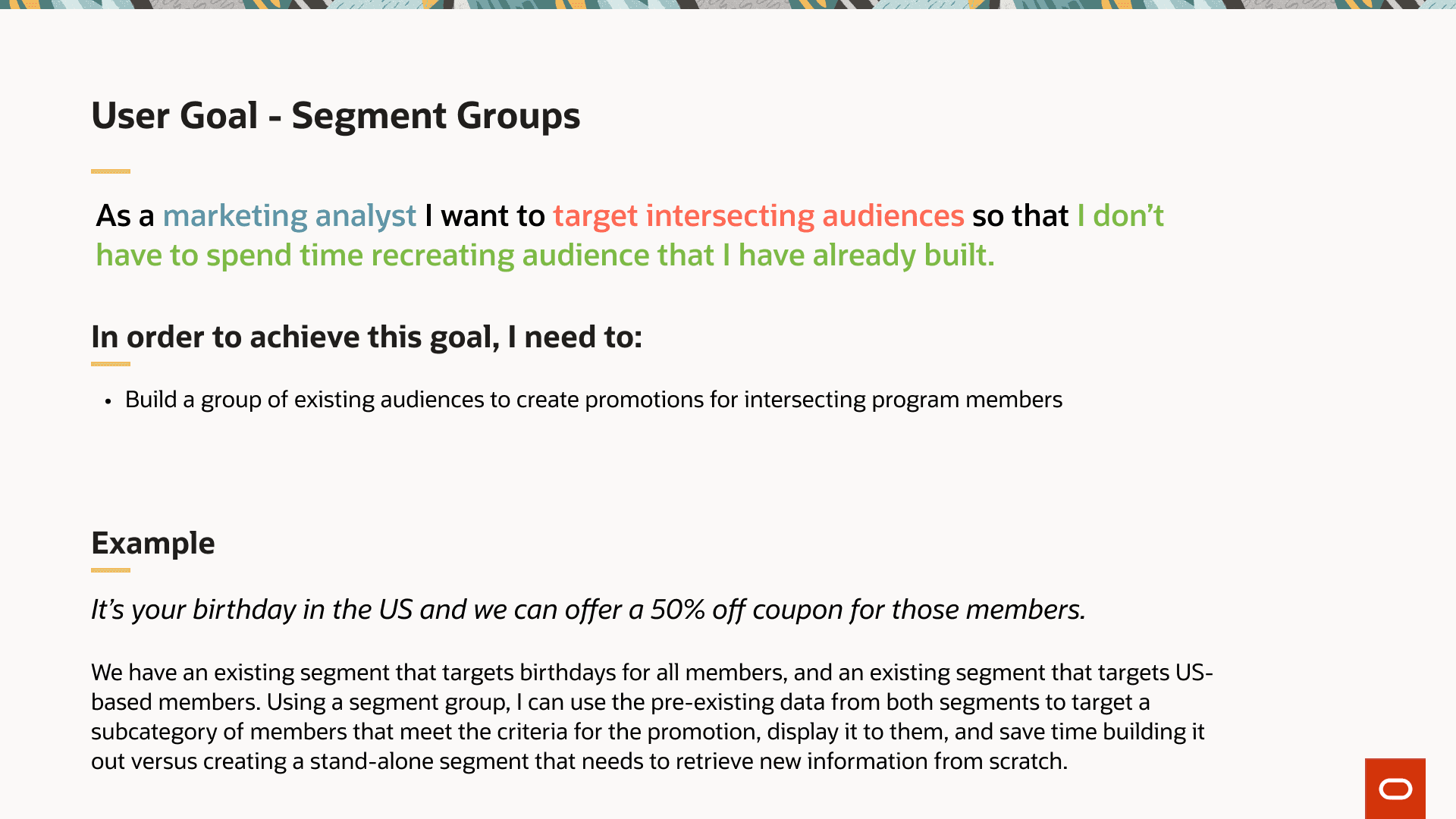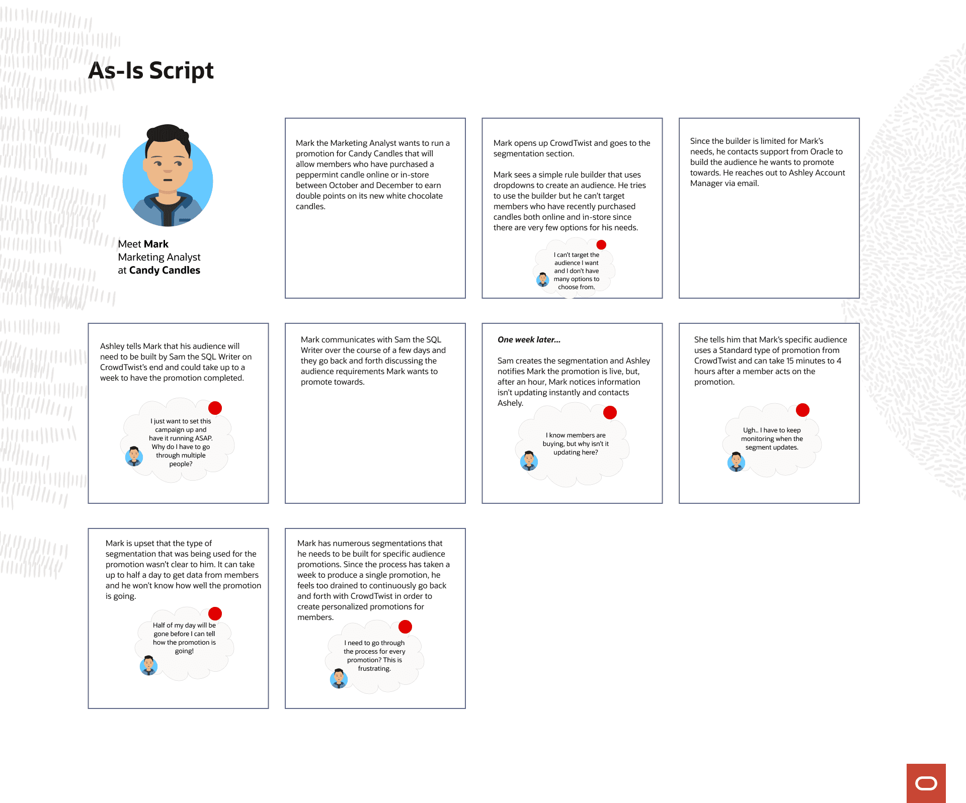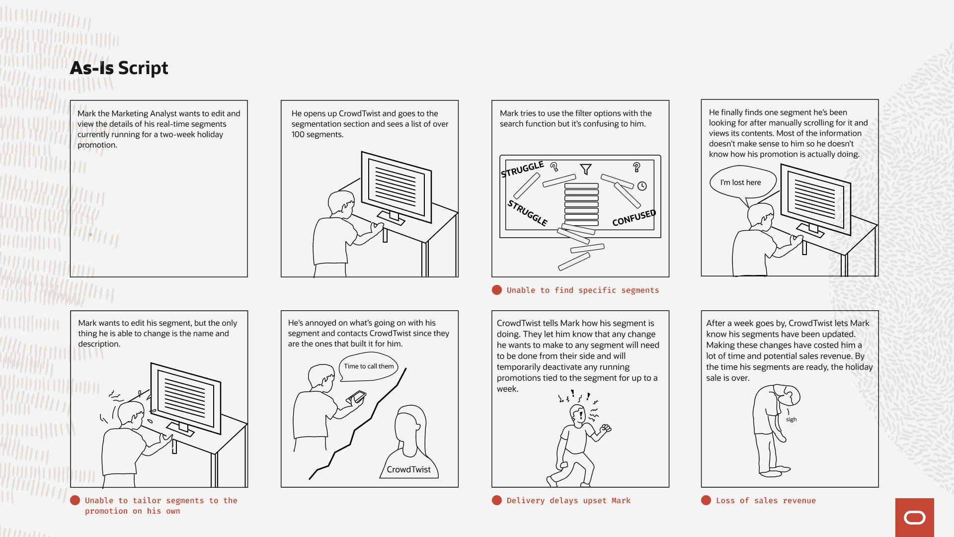 Another thing I heard periodically was the utilization of the detail pages. Many of the users didn't want to see all of their associated offers and segment groups tied in the page since they can grow quite large. One customer had over 150 offers tied to a segment. You can imagine the need for an overflow was very much a must-have. So, I divided the section of the page up into key pieces and went on from there.