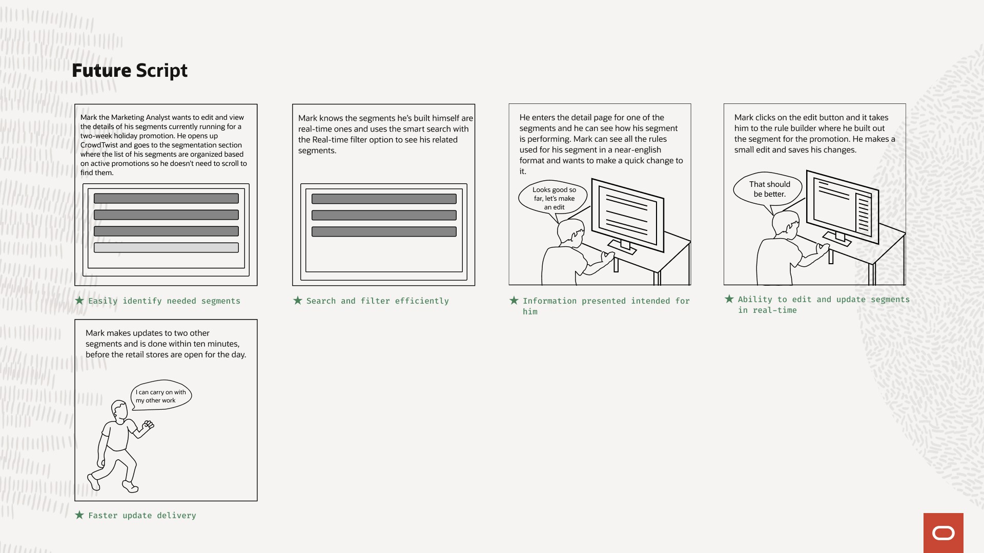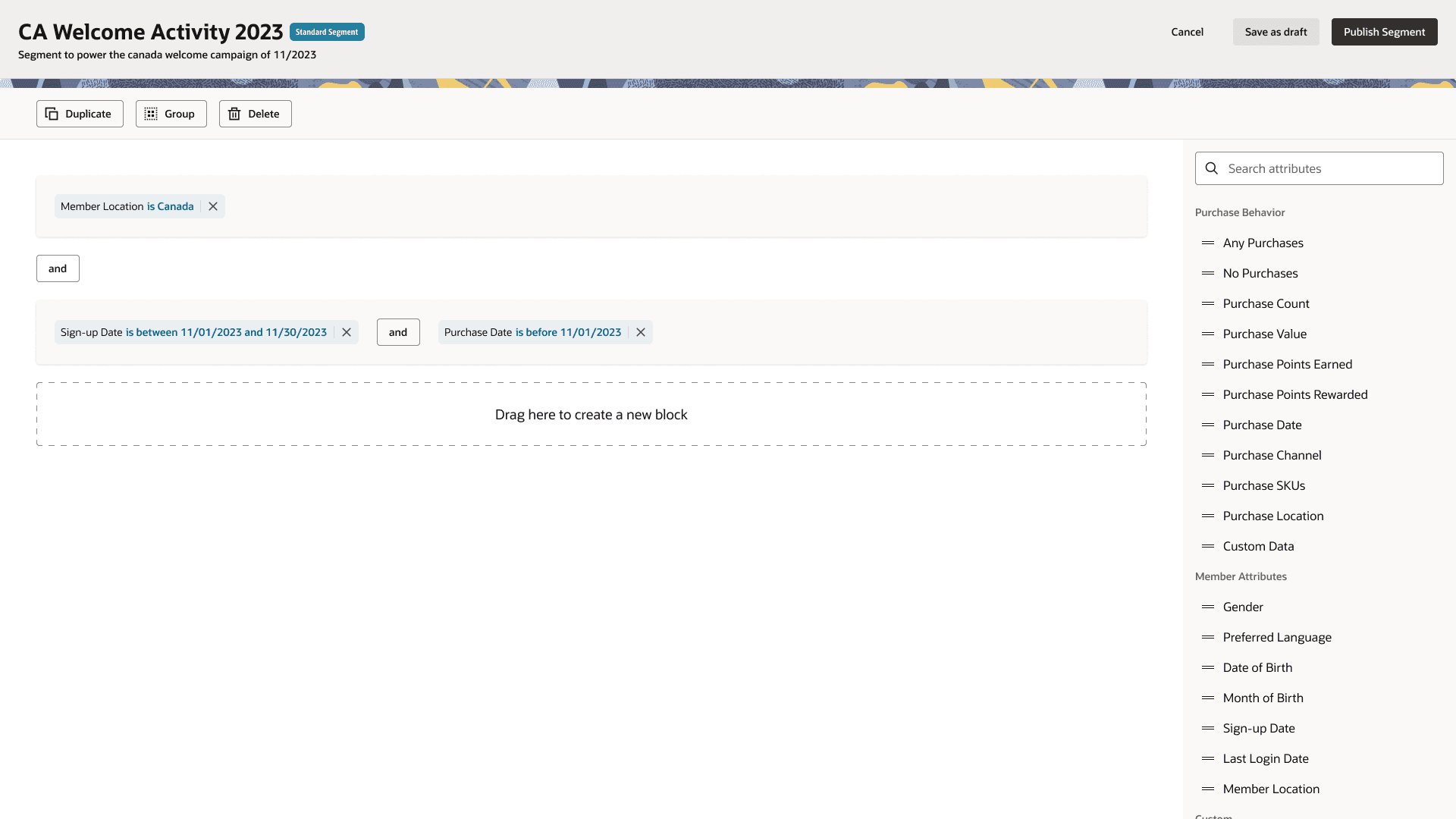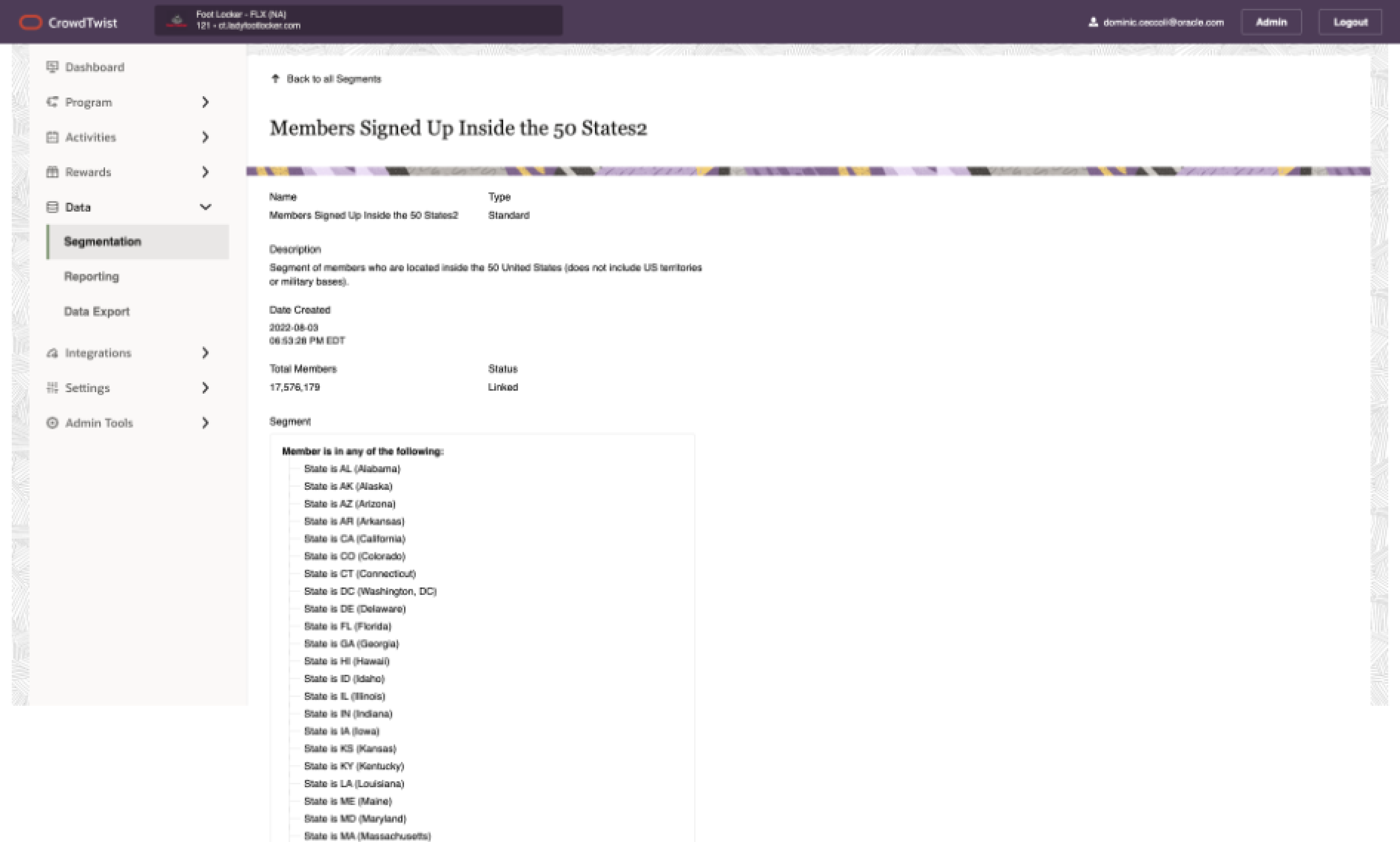 We went through the lo-fi wires with a focus group of current CrowdTwist customers and the feedback was excellent. I did notice in the sessions that users rarely went to the Segment Groups tab and when I asked about it, their answer was that they didn't know it was there. After discovering its use, it gave users new ideas on what it could be used for in terms of intersecting audiences. Based on this, I went back to the board and made the experience more intertwined with each other rather than separated. After all, the tables, detail pages, and rule builders were very much the same.
